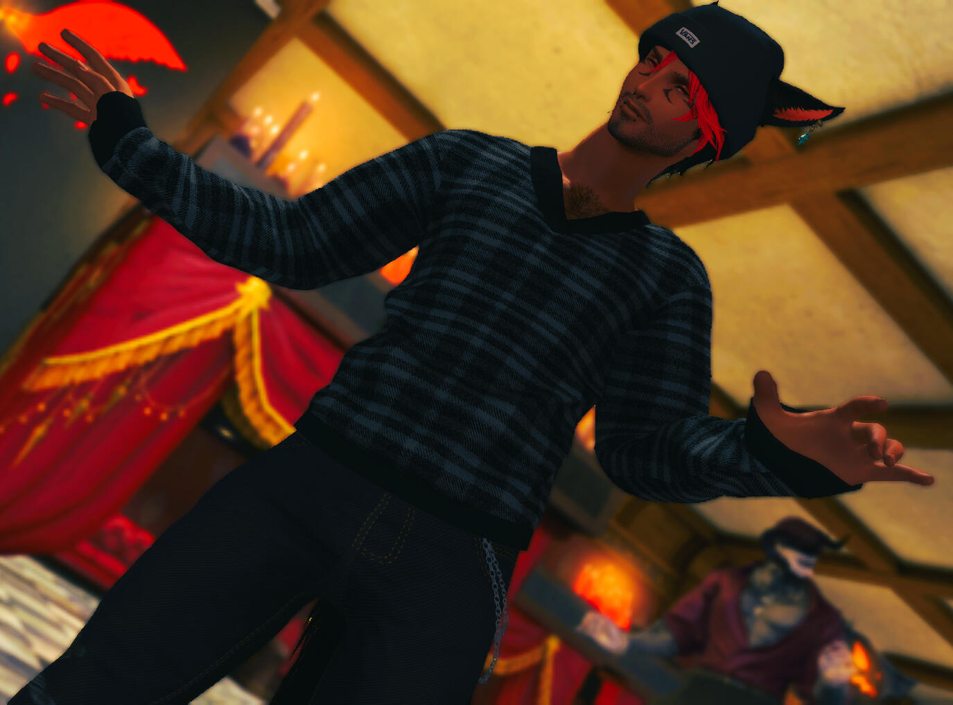 About Me: Just a simple guy who enjoys hanging out with friends. I also enjoy gathering and crafting for others and running unreal/extreme/savage content. When I'm not running content or venue hopping, you can normally find me being a goofball at my FC house with friends. I've been playing FFXIV since November 2021, right before Endwalker was released (remember those login queue times and getting kicked out, y'all...?). I own a cafe called the Mellow Moogle Cafe, with a location on Dynamis/Kraken and Chaos/Louisoix.